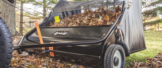 With an Agri Fab lawn sweeper the time consuming job of clearing your lawn of pine cones grass leaves and other debris becomes much easier. A lawn sweeper works smoothly with its durable brushes so your grass never gets damaged while clearing your lawn. Sweepers also have certain advantages over baggers. The Agri-Fab sweeper holds almost twice as much as a bagger so you do not have to empty as often. You can also empty the sweeper bag without getting off your tractor.