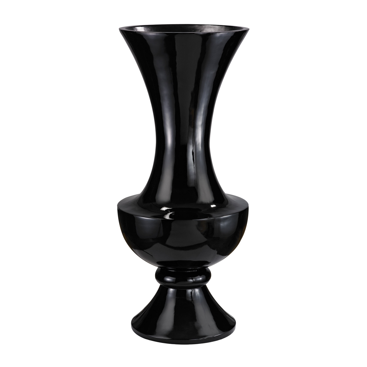 Traditional in form and modern in finish this oversized planter stands 58 in height and is finished in a gloss black finish offering a chic modern statement. Formed from fiber glass it is lightweight and durable.