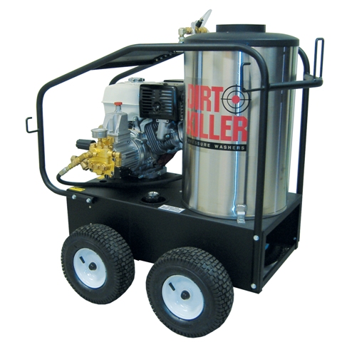The H3612 hot water gas pressure washer producing 3500 PSI at 4.2 GPM is for industrial and commercial use; perfect for the professional who cleans construction sites buildings vehicles or heavy equipment; powers a large flat surface cleaner; does graffiti or gum removal; engages in contract cleaning or washes down farm machinery. There scores of gas powered hot water pressure washers to choose from but the H3612 is unique amongst in a several ways. 1) It features the unique Kranzle pump that can run dry and bypass better than its rivals as proven in independent laboratory tests and self primes. 2) It uses an electric-start 13 HP Honda LXE gear-drive engine that has reduces wear and tear on the pump by 50% while increasing torque and cleaning power. The electric start makes starting this powerful pressure washer as easy as turning a key. 3) This hot water pressure washer uses a the electricity from a 12 volt battery and the engine rectifier to run the burner motor allowing you to generate hot water without plugging into a receptacle. 4) The four-wheel steel frame will hold up to heavy use. The H3612 comes all the accessories you need to clean to include: professional gun-jet lance 50' wire braided hose with quick coupler connections exit side chemical injection gauge four flat tip nozzle set (0 degree 15 degree 40 degree soap). With a cleaning power rating of 14700 cleaning units the H3612 hot water gas pressure washer provides a tremendous amount of cleaning power for the toughest outdoor cleaning tasks.