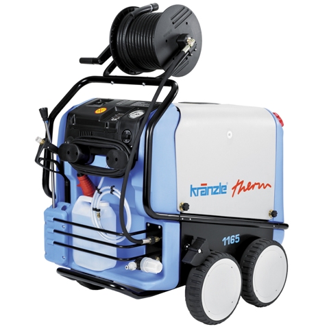 The Therm 1165TST hot water electric pressure washer producing 2400 PSI at 5.0 GPM is for industrial and commercial use; perfect for the professional who need cleans within a factory or food processing plant for use in vehicle wash bay or on a farm or at rental store to clean equipment returning from rental. The most effective cleaning comes from high pressure water heat and detergent applied all at the same time. The 220V three phase Therm 1165TST is designed to deliver this powerful cleaning combination. Equipped with the Industrial Dirt Killer turbo nozzle that provides greatest possible cleaning impact from a pressure washer high pressure soap and digitally controlled heated water the Therm is the ultimate cleaning machine. What distinguishes this Kranzle unit from the competition are the unique capabilities of the Kranzle pump and the uncompromising German quality. The Kranzle pump can run dry and bypass longer than its rivals as proven in independent laboratory tests making it more durable and reliable than the competition. The Therm 1165TST designed for daily use is equipped with a Kranzle AQ industrial grade pump and is powered by a Kranzle 220 volt 25 amp three phase TEFC electric motor. Special features include auto on/off gun-jet control with 30 second delay combined with a safety shut-down after 20 minutes that prevents accidents and a unique high pressure soap design that delivers 20 percent more cleaning power at tip. The Therm 1165TST uses a down draft style coil-burner assembly that is more efficient than top fed coils found on most other hot water pressure washers. It exceeds European standards for emission and features multiple redundant safety features to include optical flame monitoring system. Accessories include a professional gun-jet lance gauge safety coupler screw connections a fan nozzle for high pressure wash