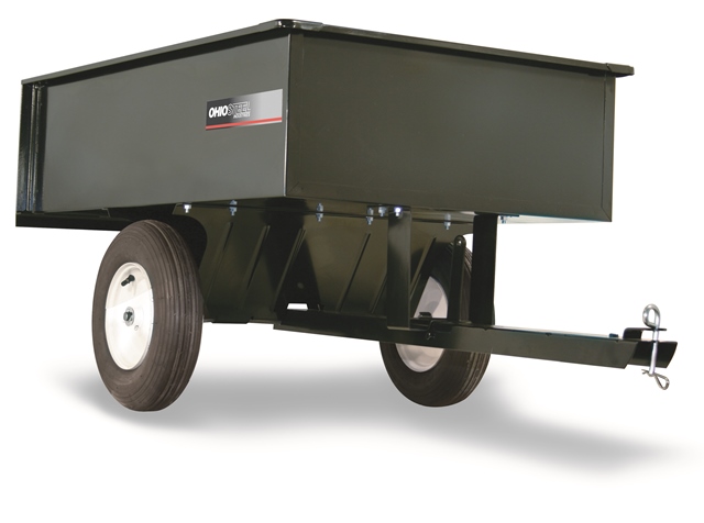 This heavy-duty steel ATV dump cart is ideal for large hauling jobs around your yard farm or estate. The 12 cu. ft. steel bed will hold up to 1000 lb. and is large enough to effortlessly haul large bulky items. The cart bed tilts to empty load with activation of hand lever. Hauls mulch dirt rocks firewood and other landscaping and gardening materials with ease.