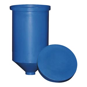 • Conical-bottom cylindrical tanks are made of 3/16 thick blue heavy-duty chemical-resistant polyethylene plastic.